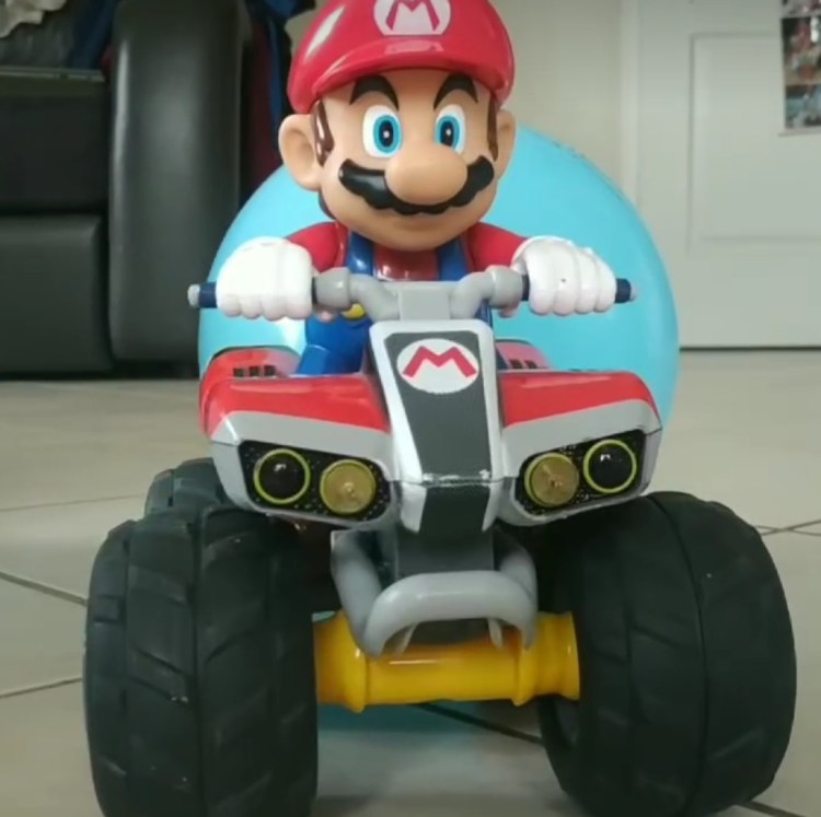 — 4 quads Mario radiocommandés, un pique à l’avant, un ballon à l’arrière, éclatez les adversaires avant d’exploser ! —