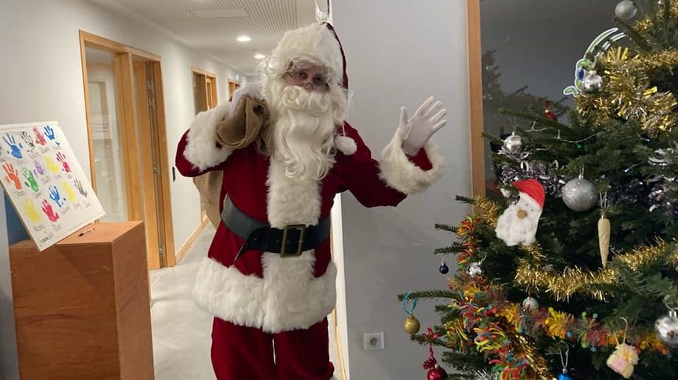En fin d’année, le Père-Noël vient à la rencontre des enfants, distribue papillotes et mandarines, discute, fait des photos…